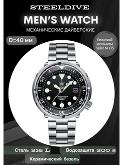 Часы механические в стиле Seiko Tuna (браслет - "Инженер")