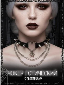 Чокер с шипами кожаный сердце бижутерия готика женская