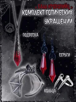 Набор цепочка серьги кольцо комплект бижутерия готика y2k