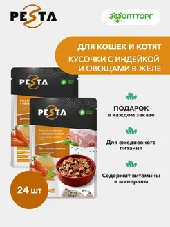 Влажный корм для кошек и котят паучи с индейкой, 85г*24шт