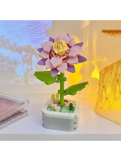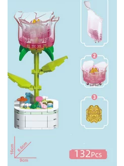 Конструктор пластиковый,роза цветок в горшке 3д, развивающий