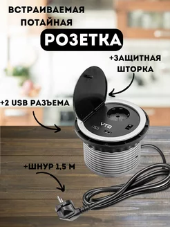 Выдвижная встраиваемая скрытая врезная розетка с USB