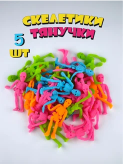 Тянущиеся игрушки разноцветные скелеты 5 шт