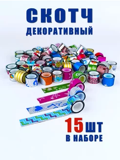 Декоративный скотч цветной для скрапбукинга 15 шт