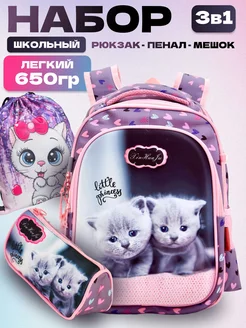 Школьный рюкзак для девочки ортопедический 1 класс Кот
