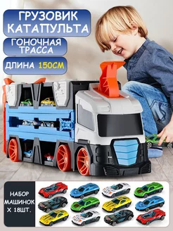 Автовоз с металлическими машинками 18шт и катапультой