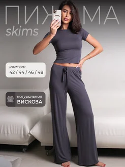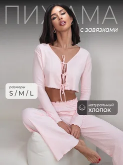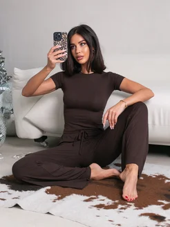 Домашний костюм женский со штанами и топом с длинным рукавом