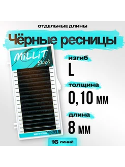 Черные ресницы Миллит L 0.10 08мм 16 линий