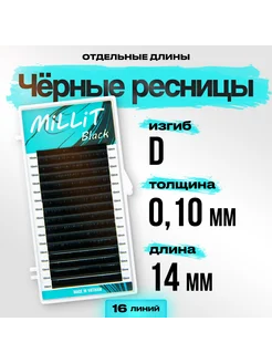 Черные ресницы Миллит D 0.10 14мм 16 линий