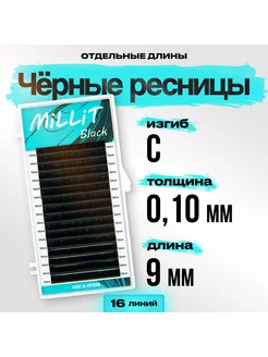 Черные ресницы Миллит C 0.10 09мм 16 линий