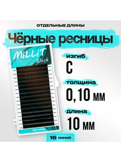 Черные ресницы Миллит C 0.10 10мм 16 линий