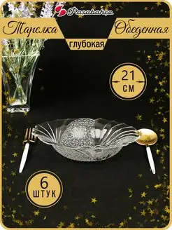 Стеклянные обеденные тарелки 21 см набор 6 шт