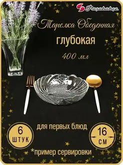 Стеклянные обеденные тарелки 16 см набор 6 шт