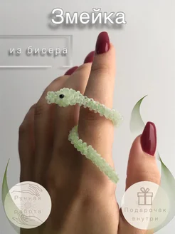 Змейка зелёная фигурка кольцо из бисера символ 2025