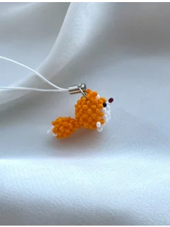 Брелок зверюшка лисичка из бисера на веревочке ручная работа