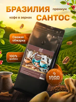 Кофе в зернах 1 кг арабика 100% Бразилия Сантос