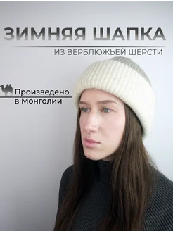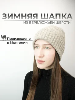Шапка вязаная (верблюжья шерсть) с отворотом