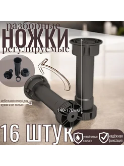 Ножка кухонная Разборная, черная, 140-170 мм (16 ШТУК)