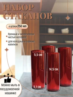 Стакан многоразовый 250мл из Поликарбоната (КРАСНЫЙ 4 ШТ)