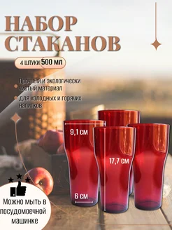Бокал многоразовый 500мл из Поликарбоната (КРАСНЫЙ 4 ШТ)