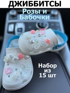 Джибитсы Цветочки для кроксов и сабо Розы и Бабочки
