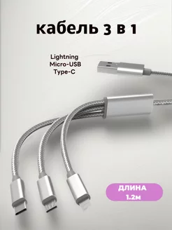 кабель для зарядки 3 в 1 lightning iphone micro usb type c