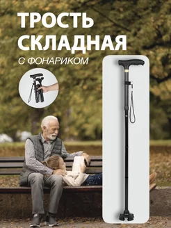 Трость складная опорная с фонариком прогулочная для ходьбы