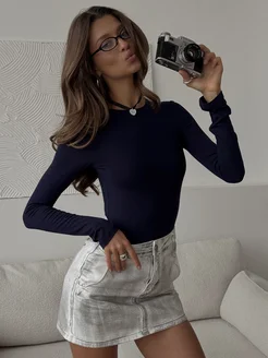 Лонгслив с длинным рукавом базовый укороченный облегающий