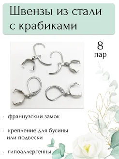 Швензы серьги из нержавеющей стали с креплениями крабиками