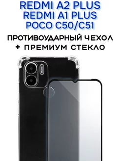 Чехол на Redmi A2 Plus, A1 Plus прозрачный + защитное стекло