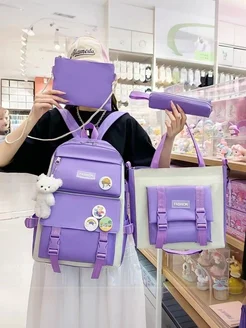 Рюкзак розовый набор школьный для подростков 5 в 1