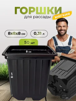 Горшки для рассады 9х9х14 см, 0,8 л 50 шт (гибкие)