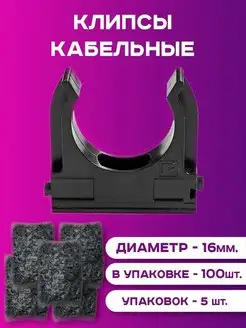 Клипса кабельная, крепление для труб 16х100 шт черная