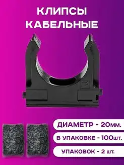 Клипса - держатель крепление для труб 20х100 шт черные