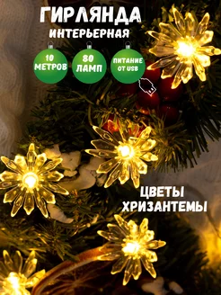 Светодиодная гирлянда "Хризантема", USB, Теплый белый