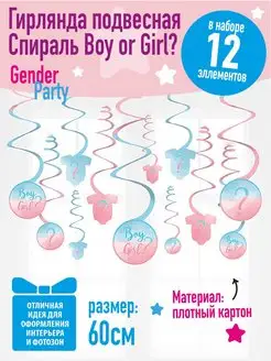 Гирлянда-спираль праздничная на Гендер пати, 60см, 12шт