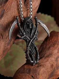 Подвеска на шею кулон скелет с 2 косами готические украшения