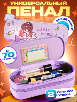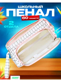 Пенал школьный в клетку подростковый эстетика 2 отделения