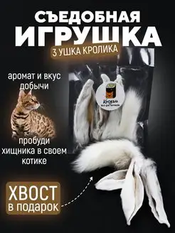Натуральные ушки кролика 3 штуки с подарком