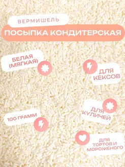 Посыпка кондитерская "Вермишель белая", 100 грамм