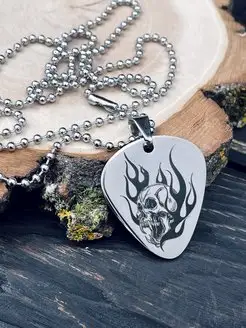 Подвеска кулон медиатор для гитары «Череп в огне»