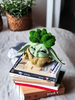 Кашпо из смолы Baby Yoda флорариум со вставкой из мха