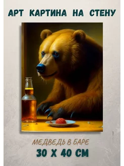 Картина в арт стиле "Одинокий медведь с пивом" 40х30