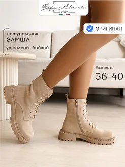 Ботинки спортивные натуральная кожа утепленные шерстью