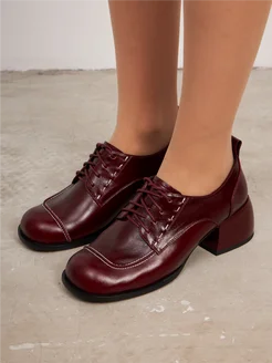 Туфли на каблуке и на шнурках натуральная кожа бордовые