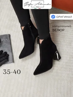 Ботинки на выход натуральная замша на каблуке с острым носом
