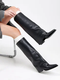 Сапоги с верхом казаки трубы демисезонные натуральная кожа