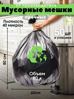 Мешки для мусора, 80л, 40 мкм, (50 шт)