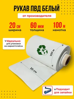 Упаковочная плёнка, рукав ПВД белый, (20 см, 60 мкм, 100 м)