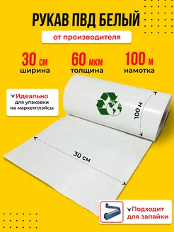 Упаковочная плёнка, рукав ПВД белый, (30 см, 60 мкм, 100 м)